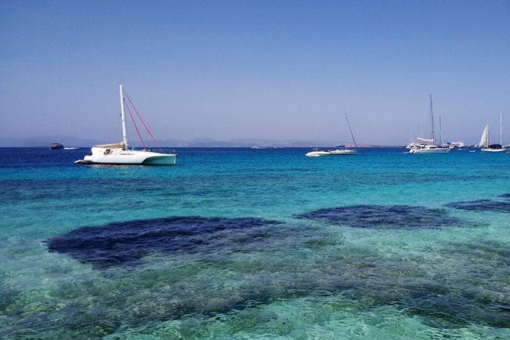 We’ll anchor in a calm, shallow area known as the Natural Pool, where you can relax, swim, or float with a drink in hand.