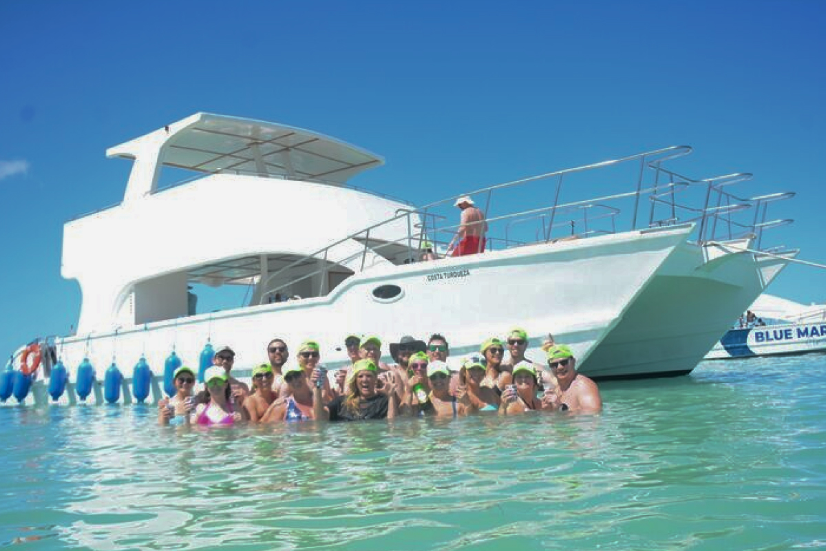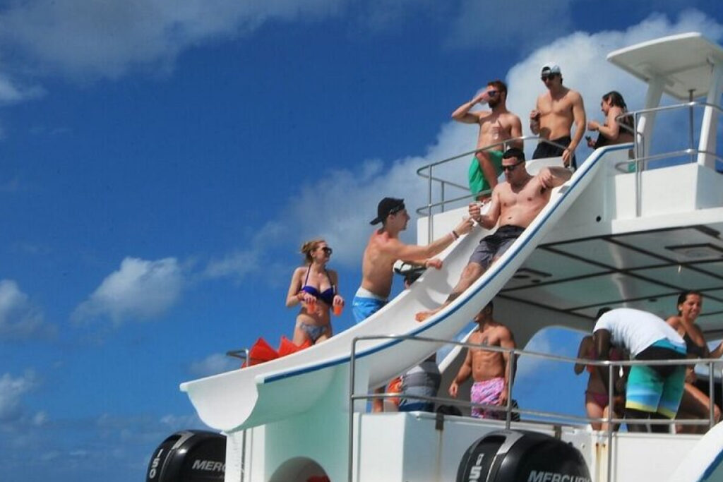 Dance, drink, and mingle as we head back along the coastline, enjoying the best Caribbean vibes.